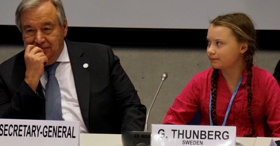 Greta Thunberg, the young climate activist who shot to global prominence in 2018, next to UNSG Antonio António Guterres at COP24 / Photo: Prachatai
